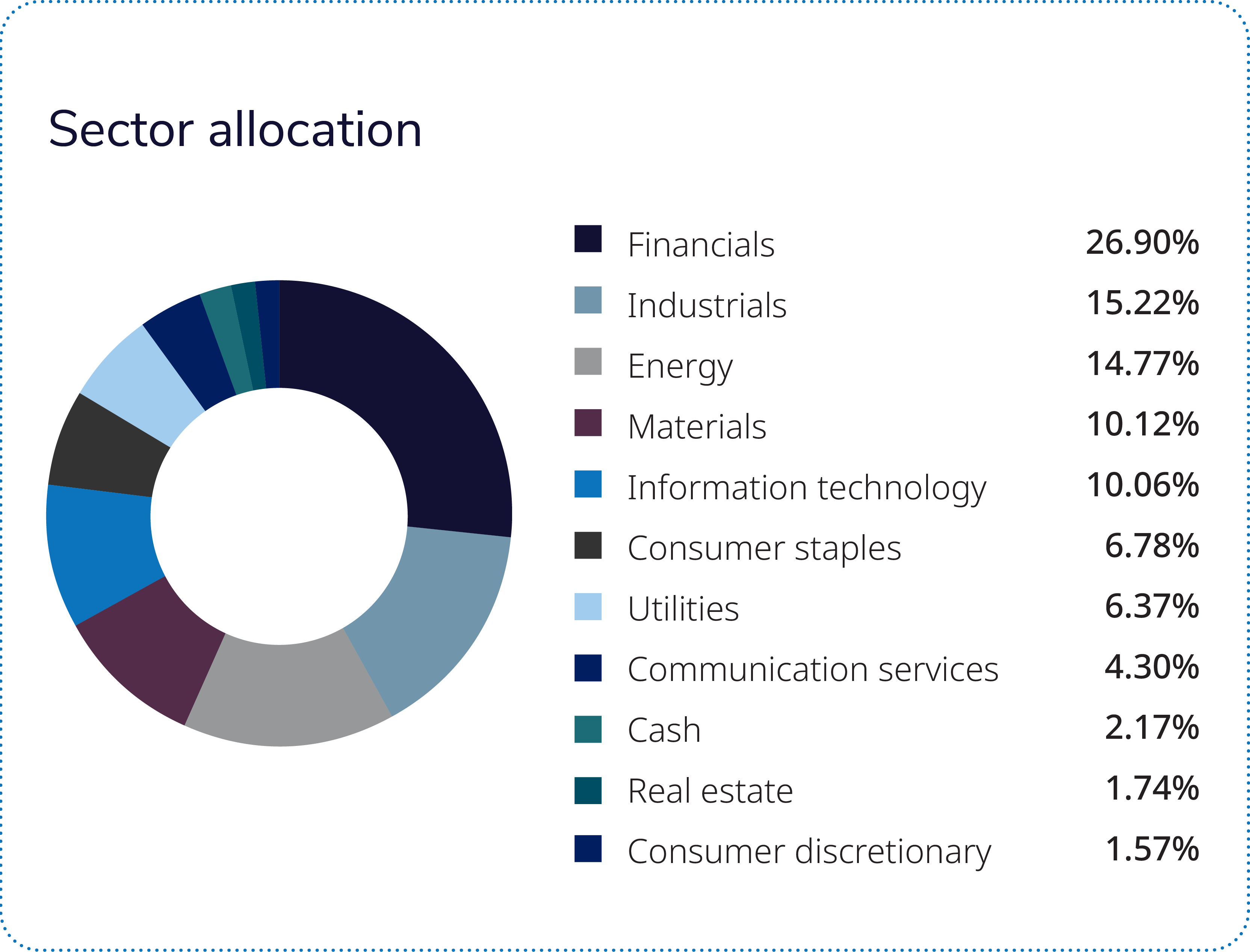 ① The mandate’s strong absolute returns in the third quarter of 2025 were driven primarily by the portfolio’s allocations in the financials, materials and energy sectors.