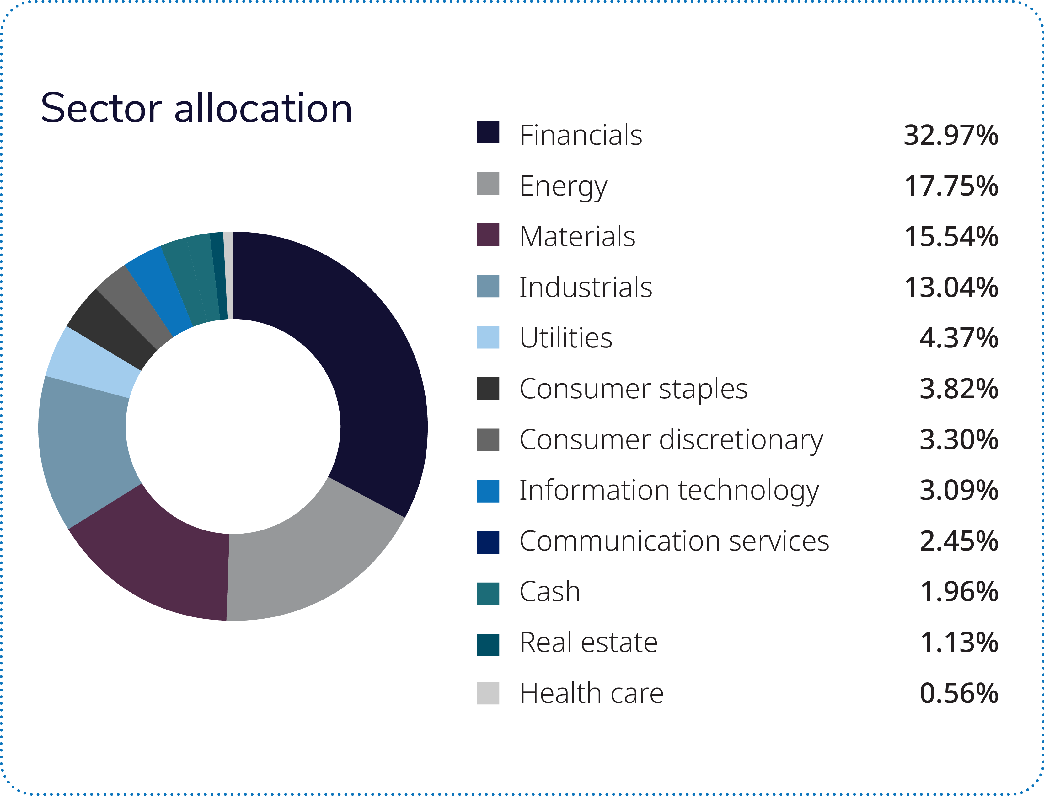 ① Positive returns for the mandate. Negative stock selection in the materials sector and an underweight in the information technology sector led to underperformance against the benchmark.