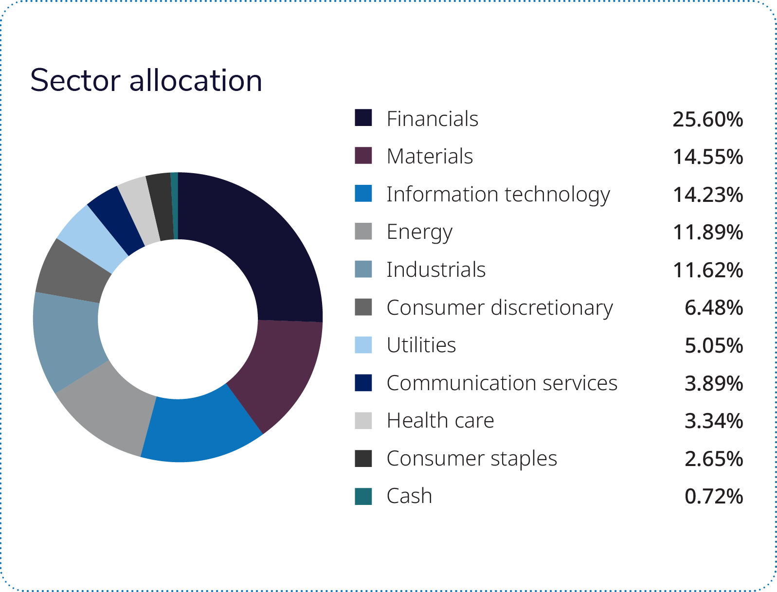 ① Positive returns for the mandate, but it underperformed the benchmark. Positive stock selection in U.S. and Canadian industrials and energy sectors contributed positively.
