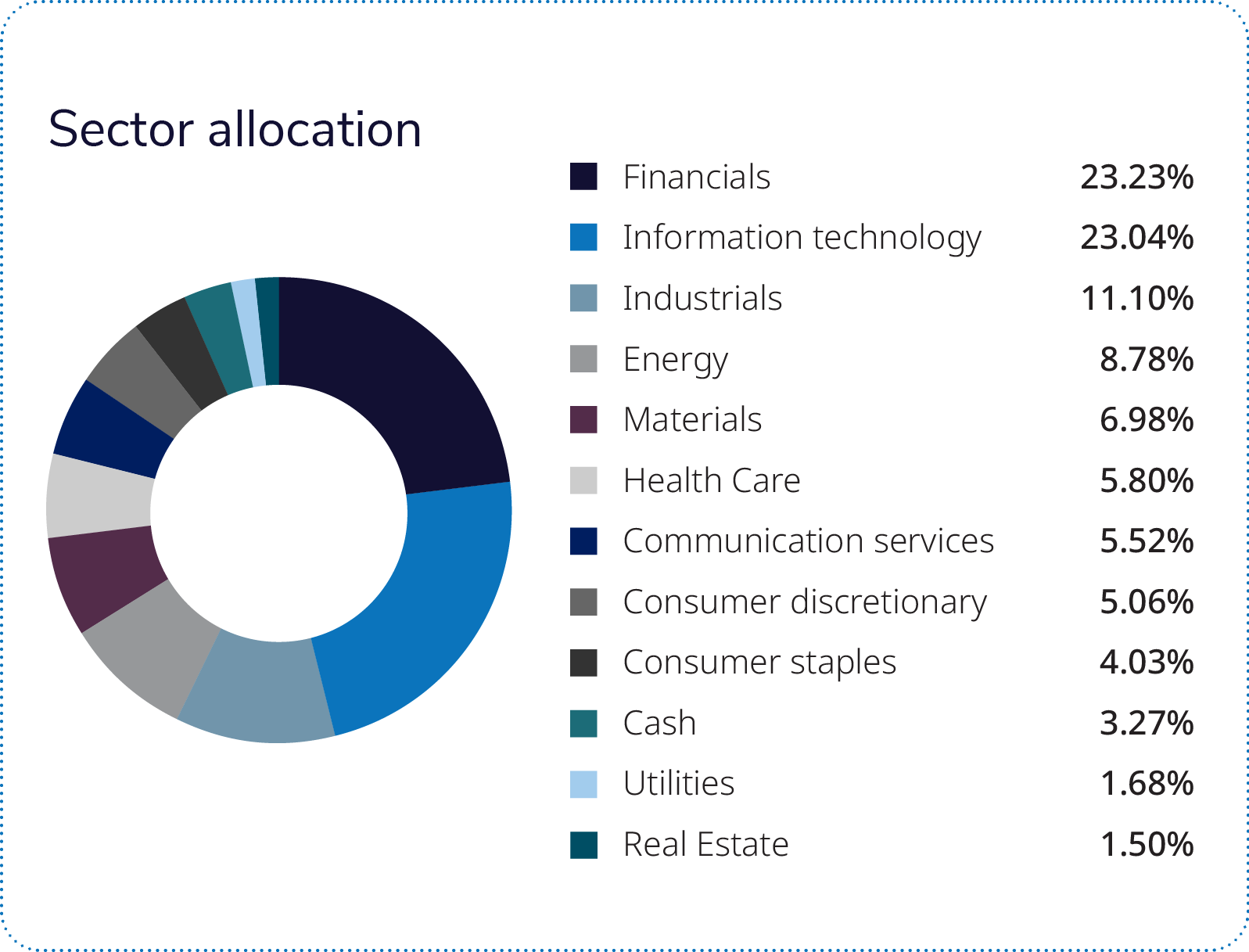 During Q4 2025, the fund modestly trailed the benchmark. An underweight in gold and precious metals was a headwind, as the group outperformed, and several holdings that had led earlier in the year retraced across materials, industrials and information technology.