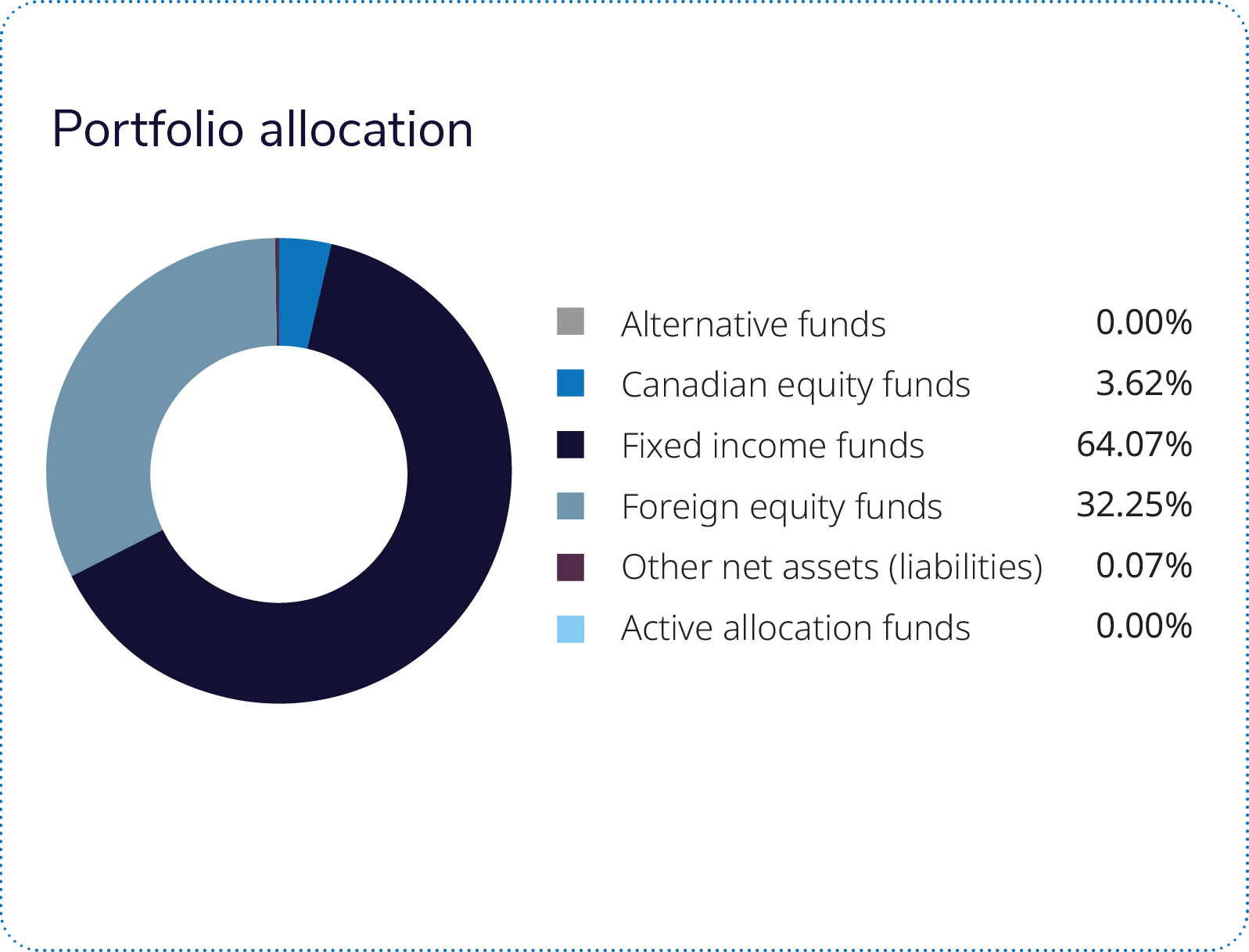 The Mackenzie Canadian Sustainable Bond Fund and the Rockefeller – IG Climate Solutions Pool were the main detractors to portfolio returns. The Mackenzie Canadian Sustainable Bond Fund generated a negative return and slightly underperformed its benchmark. Duration management of federal government bonds and security selection of corporate bonds detracted, while duration management of provincial government bonds contributed. The Rockefeller – IG Climate Solutions Pool generated a negative return and underperformed its benchmark. Security selection in the information technology and industrials sectors detracted, while utilities and consumer staples contributed.