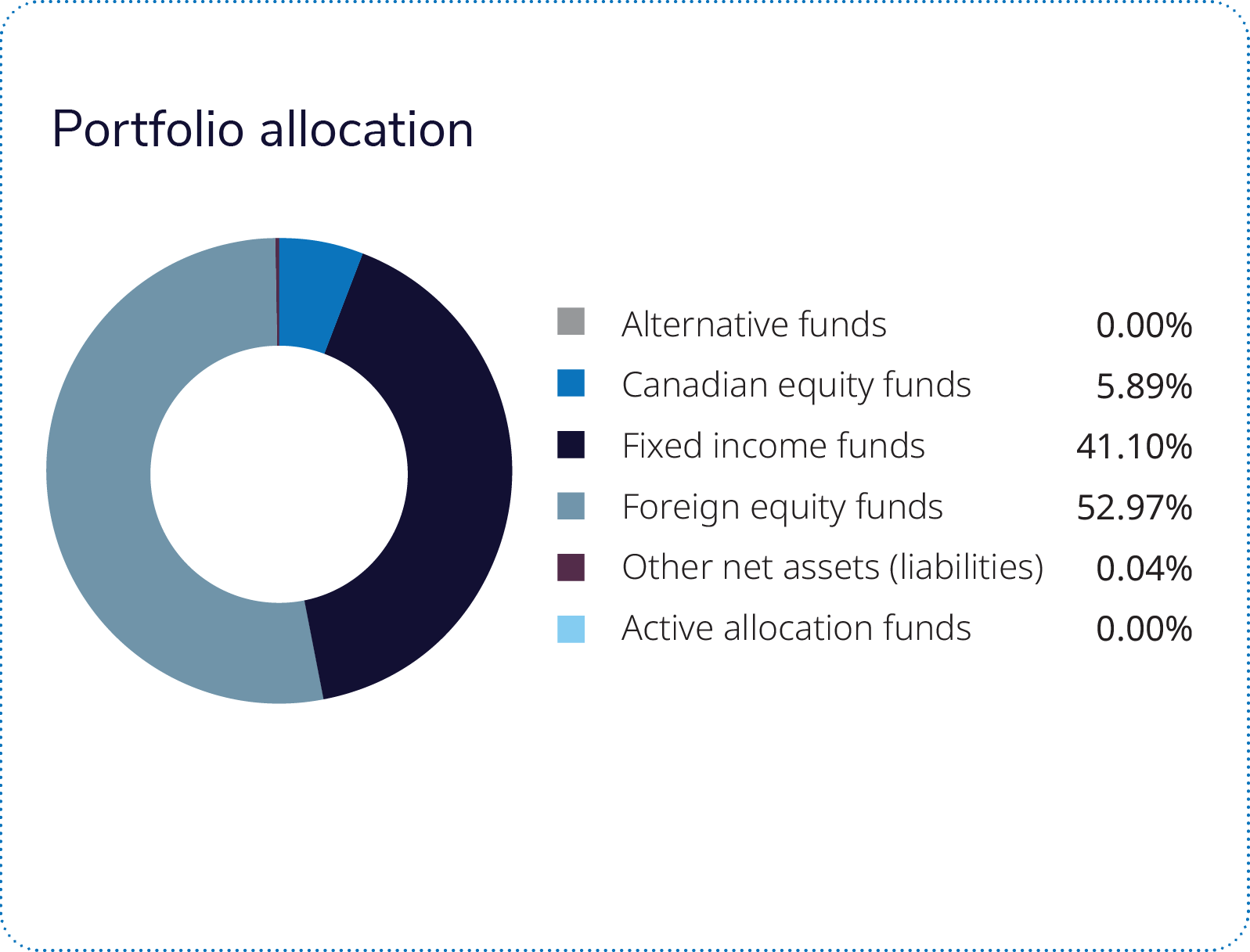 The Rockefeller - IG Climate Solutions Pool, the Mackenzie Canadian Sustainable Bond Fund and the iShares ESG Advanced MSCI USA ETF were the main detractors to performance for the quarter. The Rockefeller - IG Climate Solutions Pool underperformed its benchmark. Security selection in the information technology and industrials sectors were the detractors, while utilities and consumer staples contributed. The Mackenzie Canadian Sustainable Bond Fund underperformed its benchmark. Duration management of federal government bonds and security selection of corporate bonds were detractors, while duration management of provincial government bonds was a contributor.