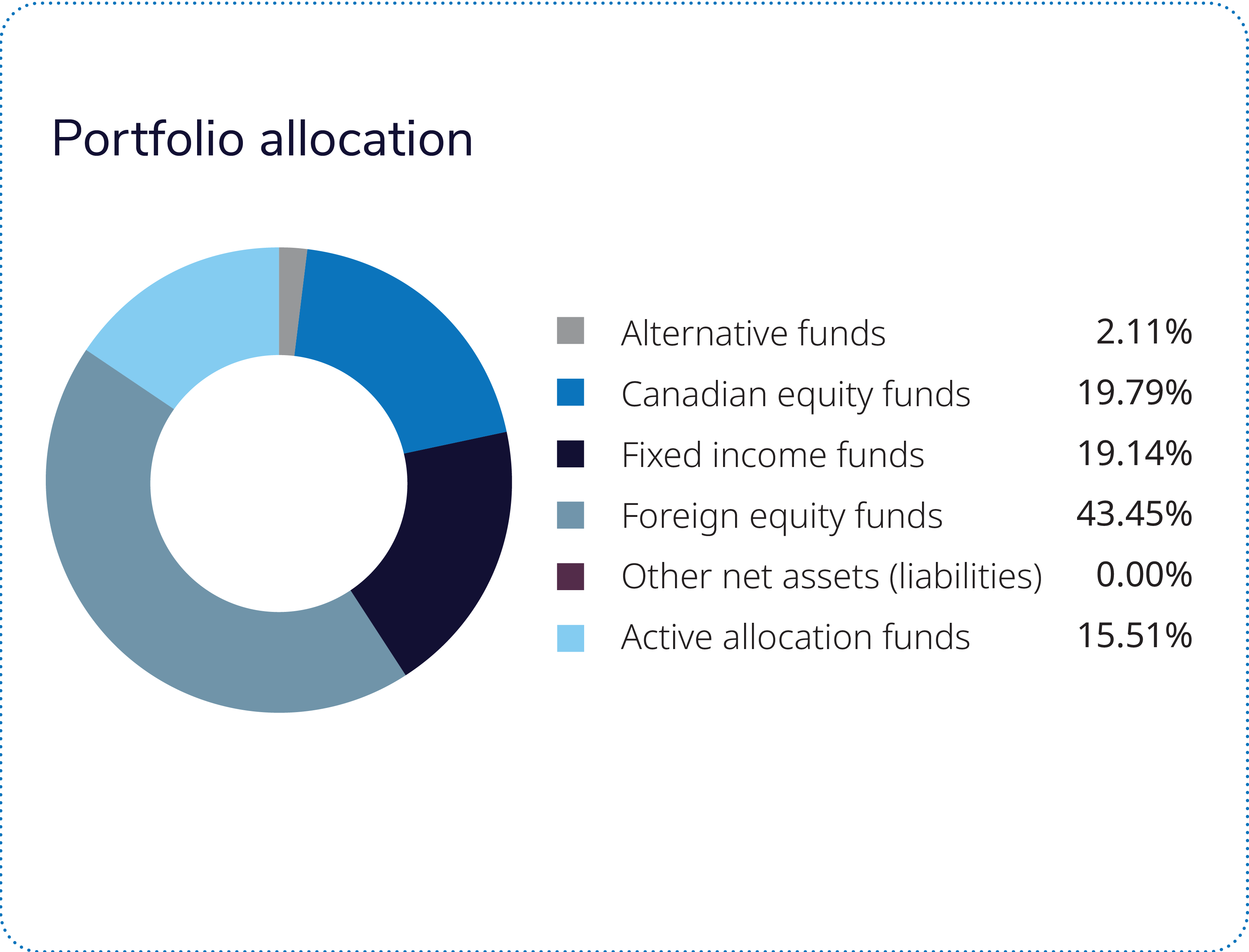 The best-performing portfolio component was the JPMorgan-IG Emerging Markets Pool. However, due to its relatively small weight in the portfolio, it had a limited impact on overall results. The Mackenzie-IG Canadian Equity Pool, with a return of more than 10%, was the next-best performer and was the top-contributing equity segment. However, it slightly lagged the S&P/TSX Composite Index, mainly due to an underweight exposure to the top-performing materials sector. U.S. equity components, including the Mackenzie-IG U.S. Equity Pool and the T. Rowe Price-IG U.S. Equity Pool, were also significant contributors. However, they too lagged their primary benchmark, the S&P 500 Index. The Fidelity-IG Canadian Equity Pool and the IG Mackenzie Pan Asian Equity Fund also ranked among the top performers. The equity-heavy BlackRock-IG Active Allocation Pool III was the portfolio’s second-top contributor, in part due to its weight (the largest in the portfolio).