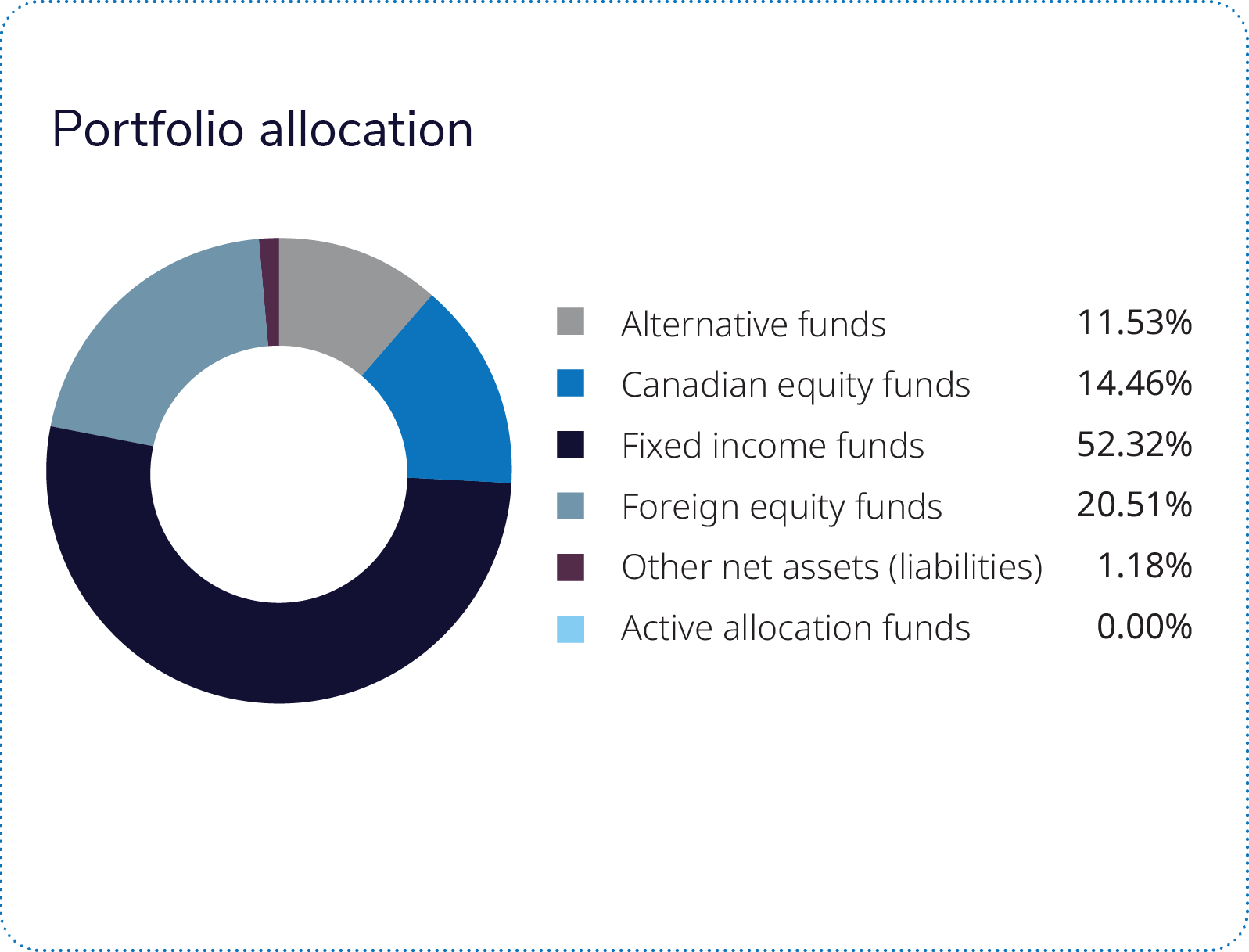 The Mackenzie – IG Canadian Bond Pool was the largest detractor, followed by the IG Mackenzie Real Property Fund. The Mackenzie - IG Canadian Bond Pool generated a negative return this quarter but outperformed its benchmark. The outperformance was led by duration management and security selection in government bonds. The selection of corporate bonds was a detractor. The IG Mackenzie Real Property Fund posted a slightly negative return, due to weaker office property performance, which pressured property valuations. This was partially offset by strong income and occupancy from industrial, retail and multi-family properties.