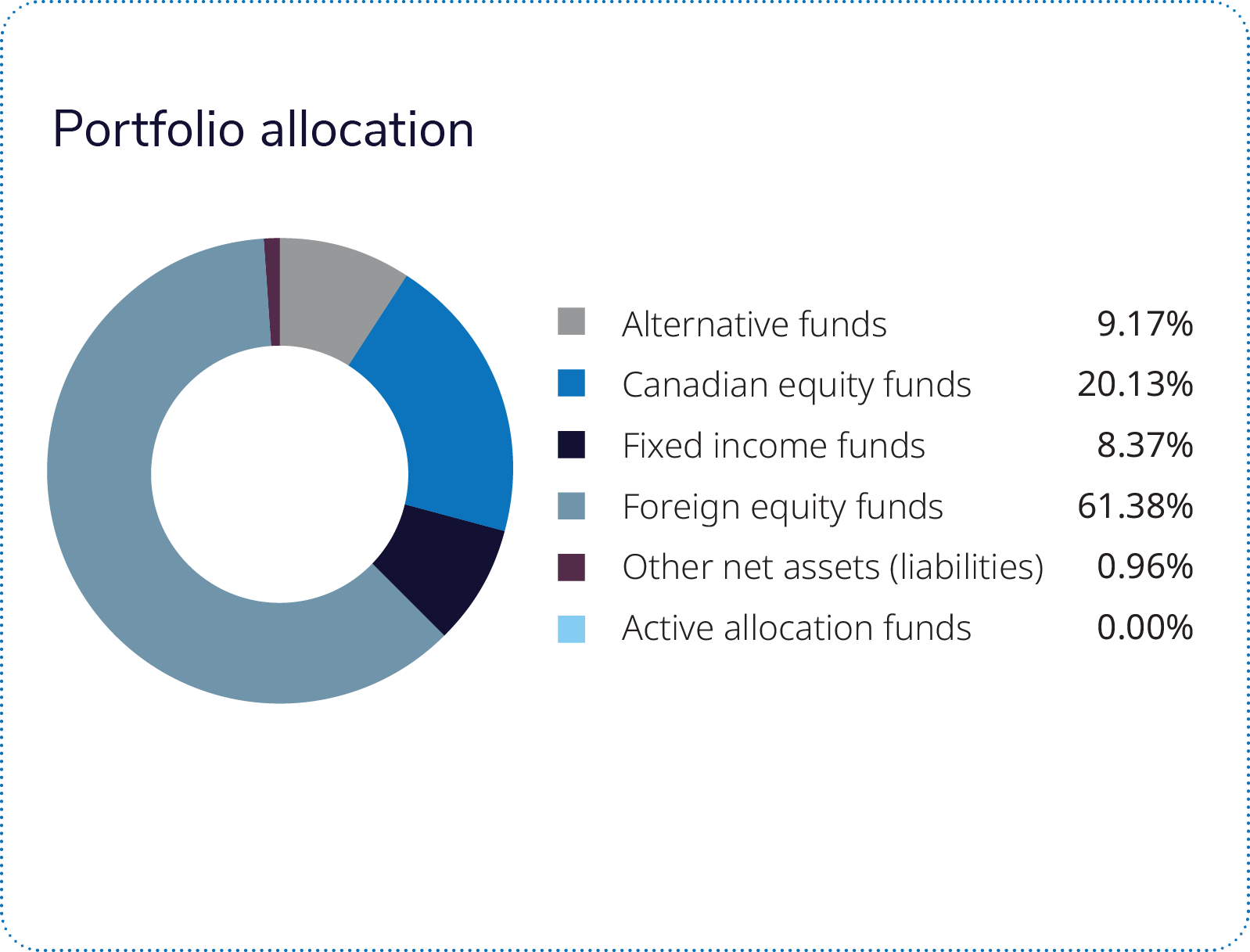 The Mackenzie Canadian Equity Pool, the Mackenzie EAFE Equity Pool and the Mackenzie IG U.S. Equity Pool were the largest contributors. The Mackenzie Canadian Equity Pool delivered a positive return, supported by a strong performance in financials and materials. It outperformed its benchmark, aided by security selection in materials and energy, while consumer discretionary detracted slightly. The Mackenzie EAFE Equity Pool was a strong performer, benefiting from gains in the United Kingdom and Switzerland. On a relative basis, security selection and an underweight position in Japan detracted, while German stock selection and overweight allocations to Korea and Austria contributed. The Mackenzie IG U.S. Equity Pool delivered strong absolute returns, driven by health care. On a relative basis, it slightly underperformed its benchmark, with security selection in information technology detracting, while an overweight allocation to and security selection in health care contributed most.