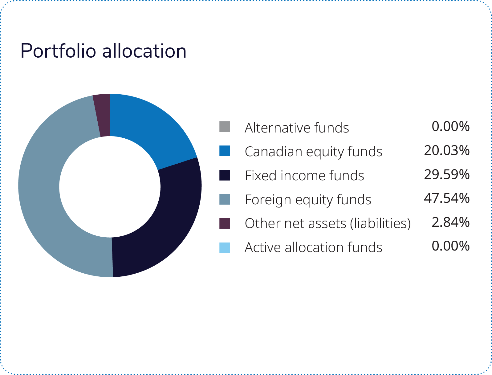 Representing a 20% fixed income allocation, the Mackenzie Canadian Strategic Fixed Income ETF posted a positive return in local currency, though it underperformed its benchmark. Absolute performance was positive, driven by Government of Canada bonds, while relative underperformance was mainly due to overweight corporate exposure (particularly financials and infrastructure) and positioning for lower yields, which detracted during periods of rising rates.