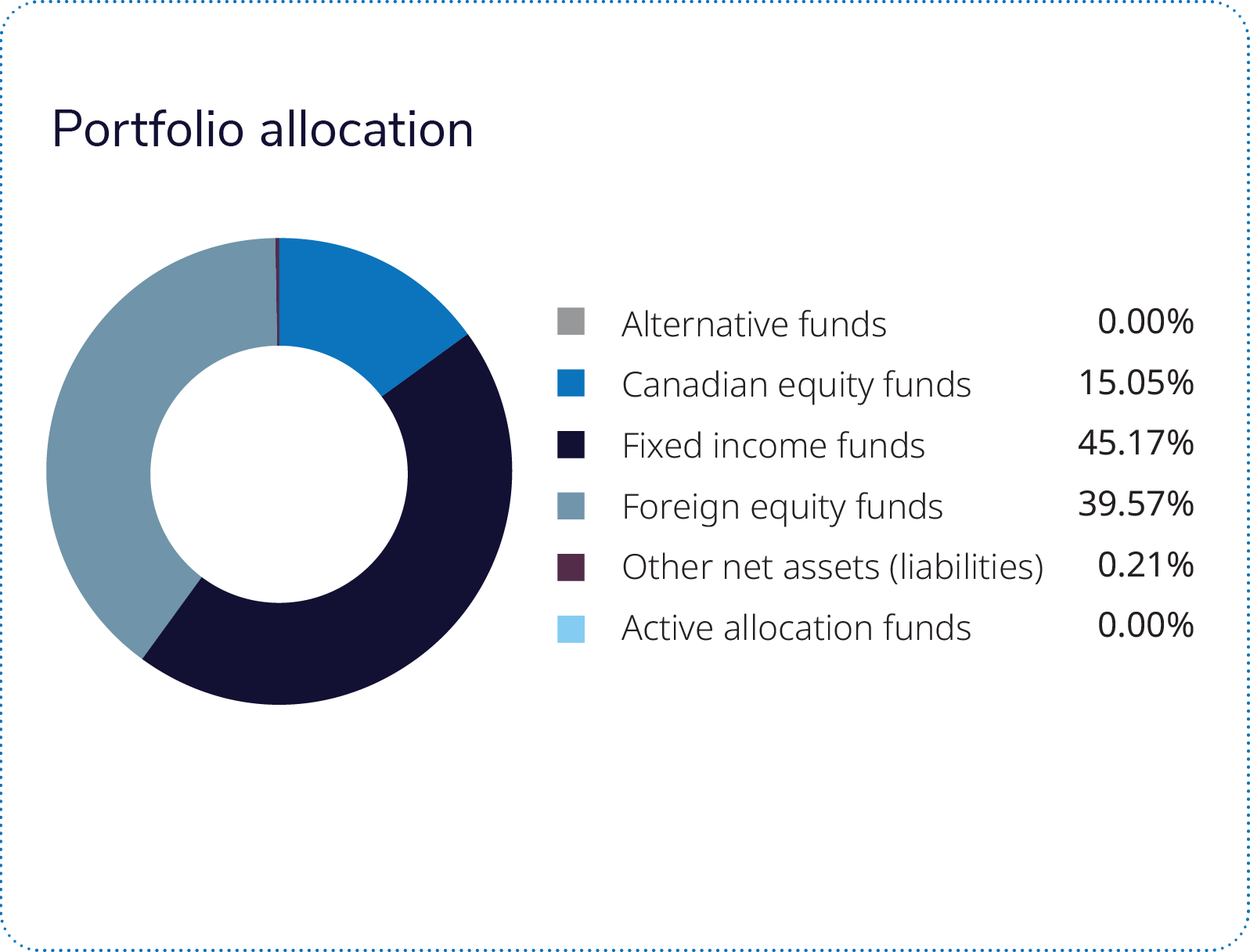 Representing a 25% allocation, the Mackenzie Canadian Strategic Fixed Income ETF posted a negative return, though it outperformed its benchmark. Government bond exposure detracted from absolute performance, while bond selection and an underweight to government bonds supported relative results. An overweight to corporate bonds partially offset the relative outperformance.