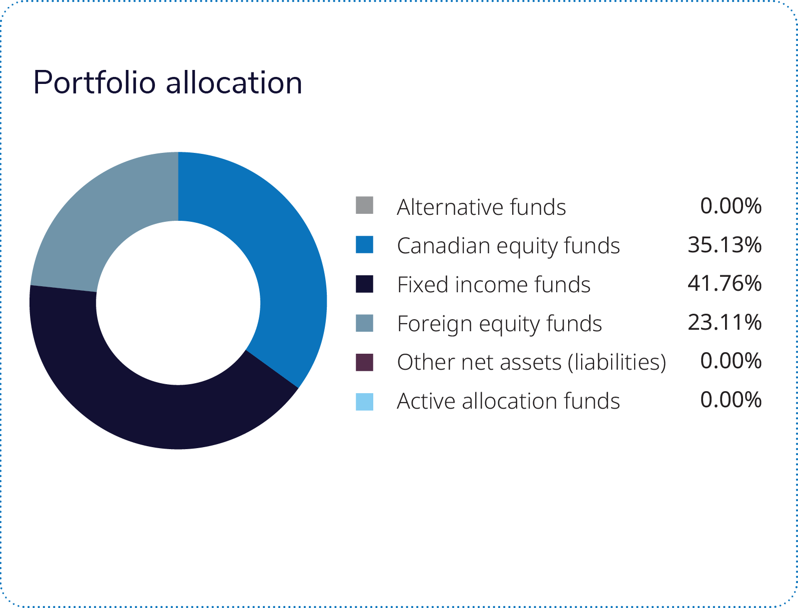 The Mackenzie - IG Canadian Bond Pool, the heaviest weighted fixed income fund in the portfolio at 39%, also contributed positively, although it underperformed its benchmark. Government bonds supported absolute returns; however, relative underperformance was driven by an overweight to corporates, which offset positive security selection and contributions from government sectors.