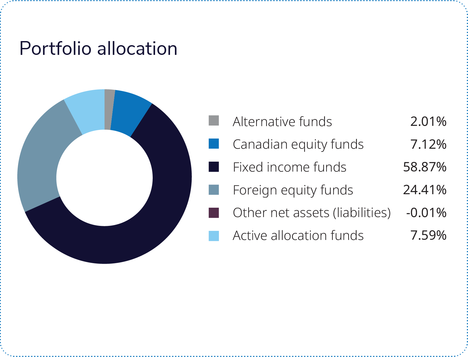 The PIMCO – IG Global Bond Pool was the most significant detractor from performance. It faced headwinds as U.S. corporate and government bond yields rose, inflation remained sticky, and expectations for U.S. Federal Reserve easing were reduced amid the quarter's oil-price shock and broader geopolitical uncertainty. The iProfile U.S. Equity Private Pool was the primary equity detractor. Weakness was concentrated in information technology, health care, communication services and financials, with Microsoft, Micron Technology and Capital One Financial among the notable detractors, although ConocoPhillips and Shell provided some offset through stronger energy exposure. Additional modest headwinds came from the Mackenzie Global Macro Fund, the iProfile ETF Private Pool, the IG Manulife Strategic Income Fund, the Mackenzie North American Corporate Bond Fund and the Wellington – IG Global Equity Hedge Pool. In this context, the portfolio's underperformance versus the category average reflected the significant drag from the PIMCO – IG Global Bond Pool and iProfile U.S. Equity Private Pool, which more than offset the otherwise strong contributions from Canadian, international and emerging equity exposures, active regional allocation and selected low-volatility sleeves. The portfolio's higher allocation to global bonds and U.S. equities relative to category peers detracted from relative performance during a quarter that favoured Canadian and international equity exposures.
