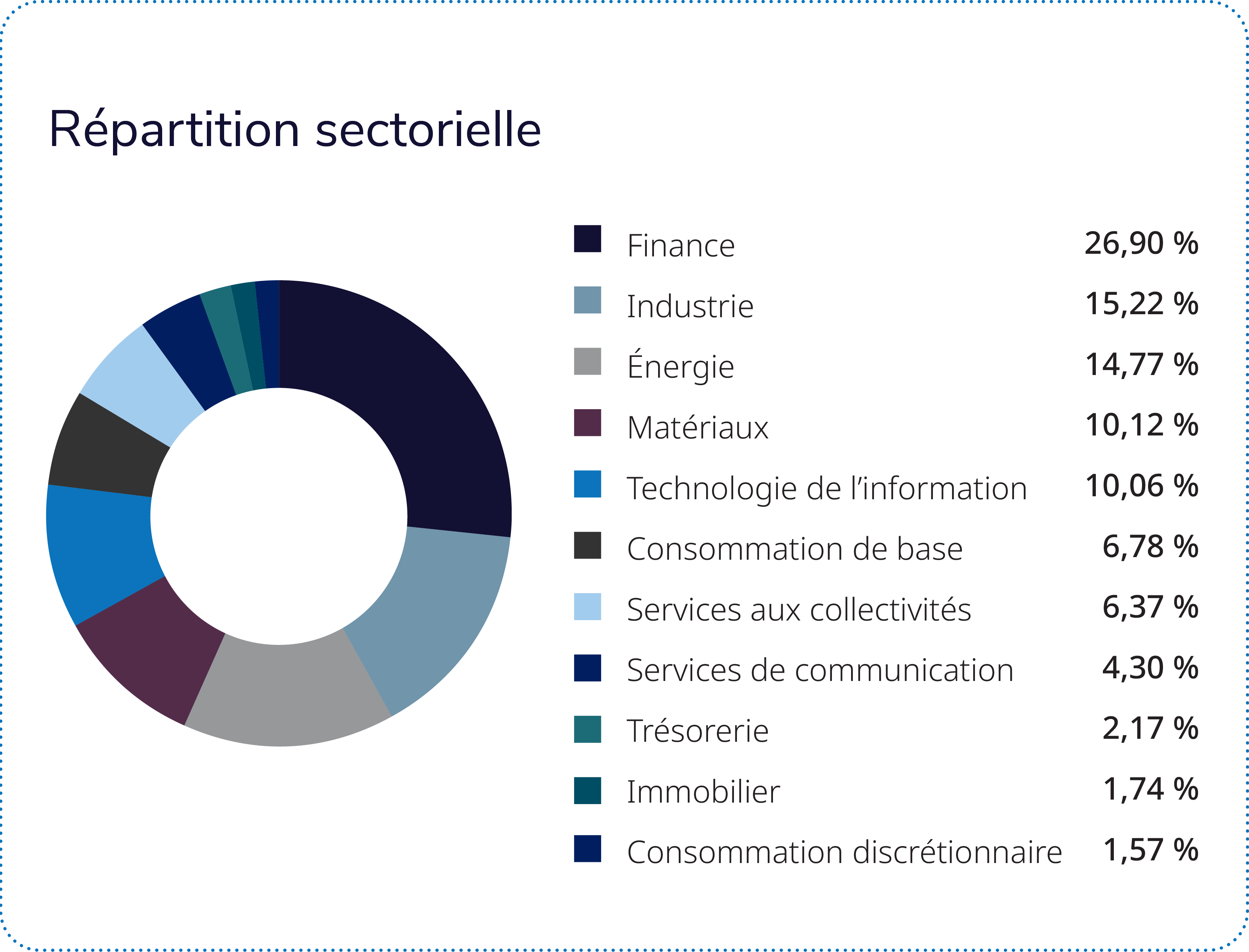 ① Les solides rendements absolus réalisés par le mandat au troisième trimestre de 2025 résultent principalement de la répartition du portefeuille dans les secteurs de la finance, des matériaux et de l’énergie.