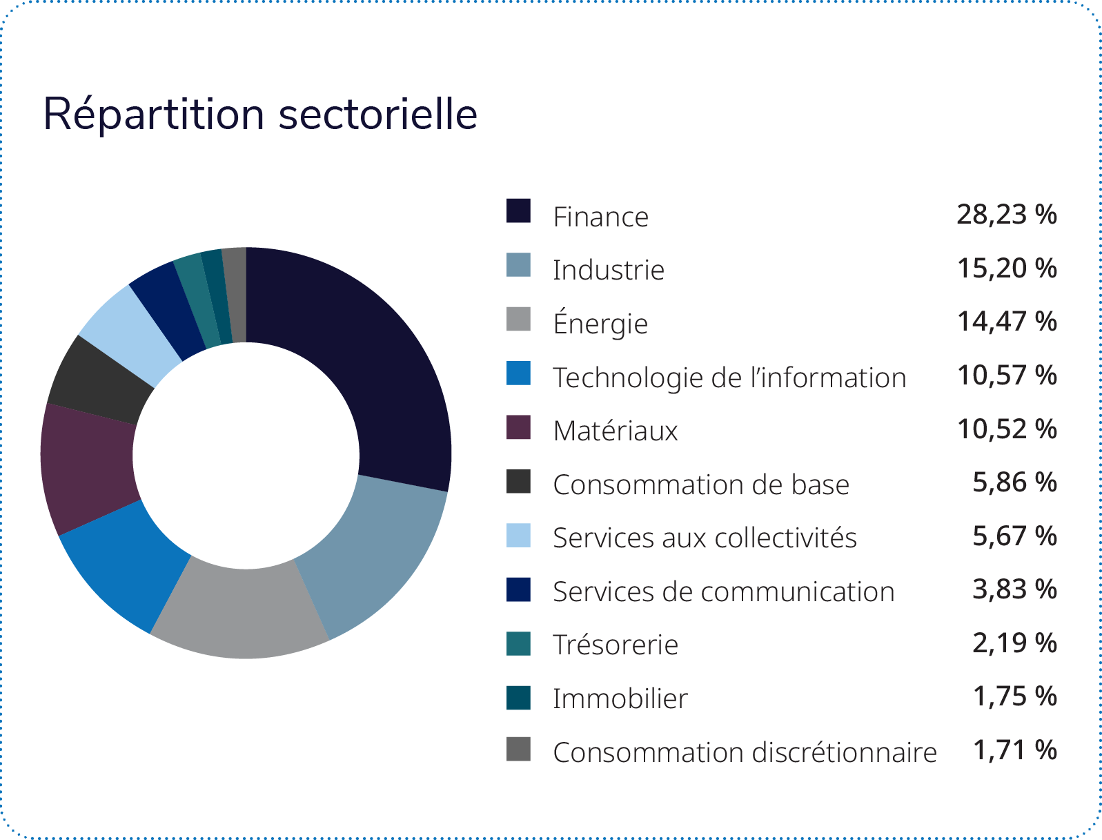 ① Les rendements absolus positifs réalisés par le mandat au dernier trimestre de 2025 résultent principalement de la répartition du portefeuille dans les secteurs de la finance, de l’énergie et des services aux collectivités.