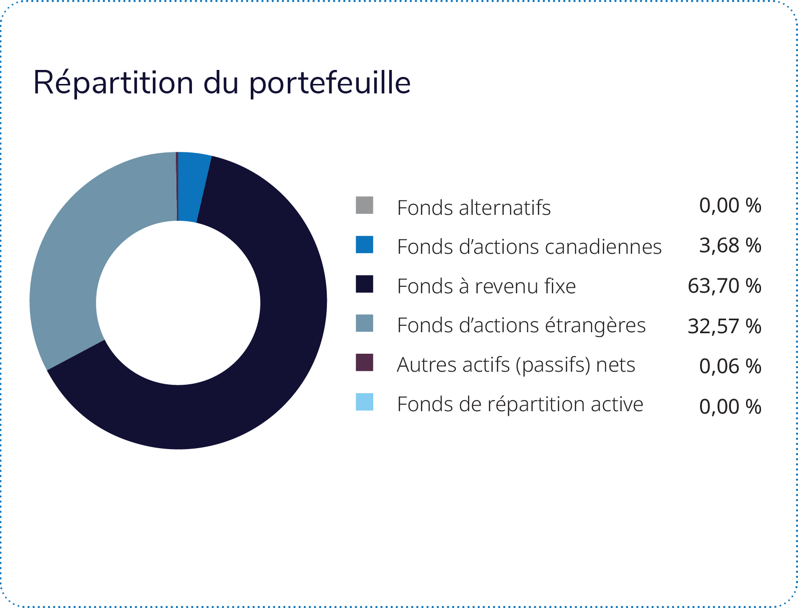 Le Fonds d’actions mondiales Mackenzie Betterworld, le Fonds Leaders de la durabilité Putnam – IG Mandat privé et le FNB iShares ESG Advanced MSCI USA ont nui le plus au rendement du portefeuille. Le Fonds d’actions mondiales Mackenzie Betterworld a produit un rendement inférieur à celui de son indice de référence, la sélection des titres dans les secteurs de la santé, de la technologie de l’information et des matériaux ayant nui le plus au rendement. Le Fonds Leaders de la durabilité Putnam – IG Mandat privé a produit un rendement inférieur à celui de son indice de référence, principalement en raison de la sélection des titres dans les secteurs de la finance et de la technologie de l’information, ainsi que de la sous-pondération du secteur de l’énergie