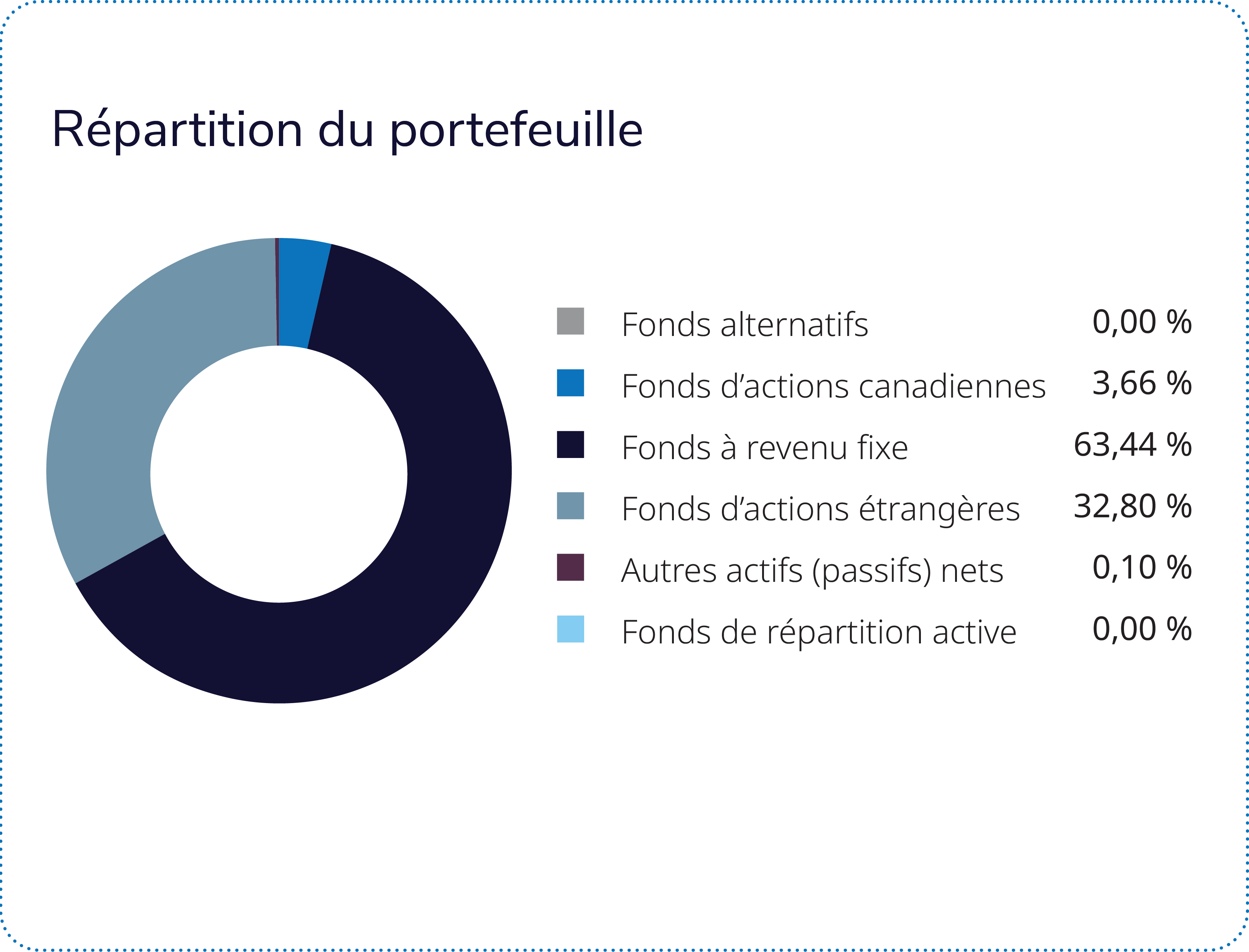 Aucun facteur n’a freiné le rendement durant le trimestre. Le Fonds mondial d’obligations durables à rendement élevé Mackenzie et le Fonds d’impact mondial T. Rowe Price – IG Mandat privé sont les composantes qui ont contribué le moins au rendement du portefeuille. De façon générale, la baisse des taux obligataires mondiaux a entraîné une hausse des prix des obligations et favorisé les rendements des titres à revenu fixe. Le Fonds d’impact mondial T. Rowe Price – IG Mandat privé a bénéficié de la sous-pondération des secteurs de la consommation de base et de l’immobilier.