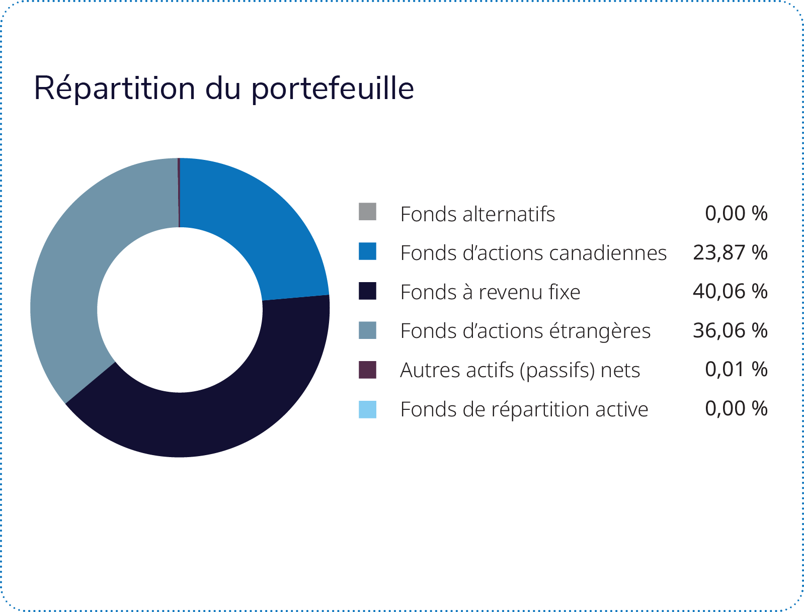 Du côté des titres à revenu fixe, le fonds iShares Core U.S. Aggregate Bond ETF a le plus contribué au rendement. Ce FNB s’est bien comporté grâce à sa large exposition à des obligations de qualité investissement et à un revenu stable. Au quatrième trimestre de 2025, les taux américains sont restés généralement inchangés, et les conditions de crédit sont demeurées relativement stables.
