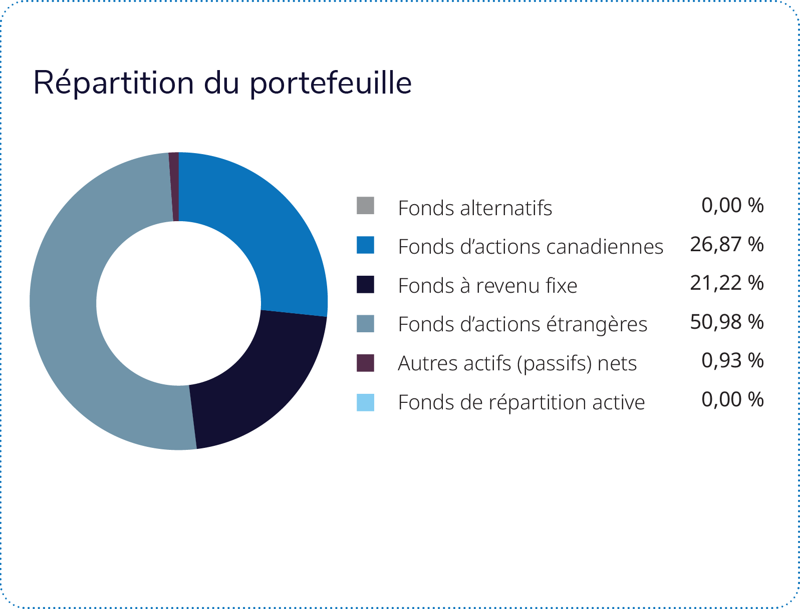 Les placements dans les fonds communs peuvent donner lieu à des commissions ainsi qu’à des frais. Veuillez lire le prospectus et consulter un conseiller ou une conseillère IG avant d’investir. Le taux de rendement indiqué représente le rendement composé annuel total au 31 décembre 2025, y compris les variations de la valeur et le réinvestissement de tous les dividendes ou distributions. Il ne tient pas compte des frais d’acquisition, de rachat, de distribution ou facultatifs ni des impôts sur le revenu payables par tout(e) porteur ou porteuse de titres et qui auraient réduit le rendement. Les fonds communs ne sont pas des placements garantis, leur valeur varie fréquemment et leur rendement antérieur peut ne pas se reproduire. Les fonds communs, produits et services de placement sont offerts par la Division des fonds communs de placement d’IG Gestion de patrimoine Inc. (au Québec, cabinet en planification financière). D’autres produits de placement et des services de courtage sont offerts par le Courtier en placement, IG Gestion de patrimoine Inc. (au Québec, cabinet en planification financière), membre du Fonds canadien de protection des investisseurs.