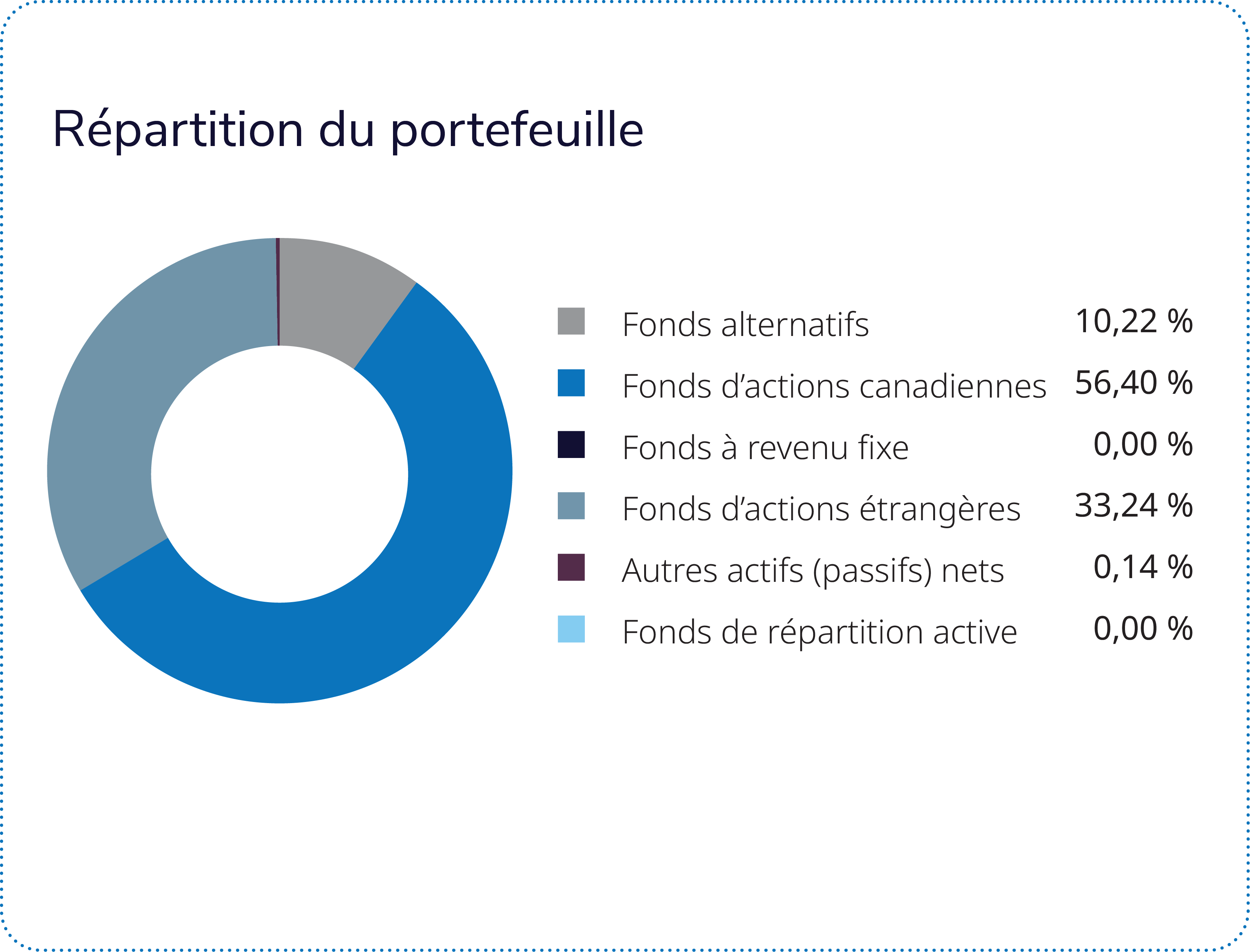 Les plus grands contributeurs aux rendements du portefeuille ont été le Mandat d’actions canadiennes Mackenzie, le Fonds en gestion commune d’actions américaines Mackenzie – IG et le Fonds de primes de risque améliorées sur actions Mackenzie. Le Mandat d’actions canadiennes Mackenzie a affiché un rendement positif, grâce à la sélection des titres dans les secteurs des matériaux et de la finance. Par rapport à son indice de référence, le Fonds a inscrit un rendement supérieur en raison notamment de la sous-pondération du secteur de l’industrie et de la sélection de titres dans les secteurs de la finance et de la technologie de l’information. Le Fonds en gestion commune d’actions américaines Mackenzie – IG a produit de solides rendements, porté par le secteur de la technologie de l’information. Le Fonds a surpassé son indice de référence, le choix des titres dans les secteurs de l’industrie et de la santé ayant le plus contribué au rendement. Le Fonds de primes de risque améliorées sur actions Mackenzie est un fonds d’actions ayant recours à l’effet de levier. L’équipe de placement a recours à l’effet de levier pour gérer l’exposition globale du portefeuille aux actions de façon efficace sur le plan des capitaux. Le Fonds a contribué au rendement, alors que les marchés boursiers en général ont progressé.