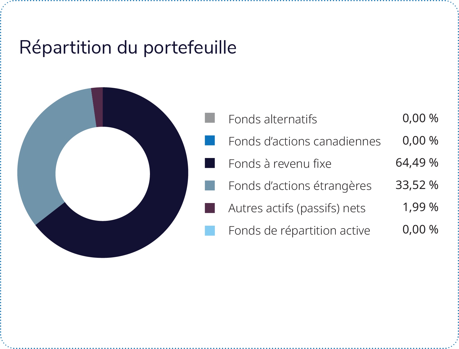 Le Fonds canadien d’obligations Mackenzie, qui représente 21 % du portefeuille, a nui au rendement. Une surpondération des obligations gouvernementales à plus courte duration et de titres de certaines sociétés non financières a contribué au rendement. Une sous-pondération des obligations fédérales et provinciales à plus longue duration a contribué à la sous-performance relative.