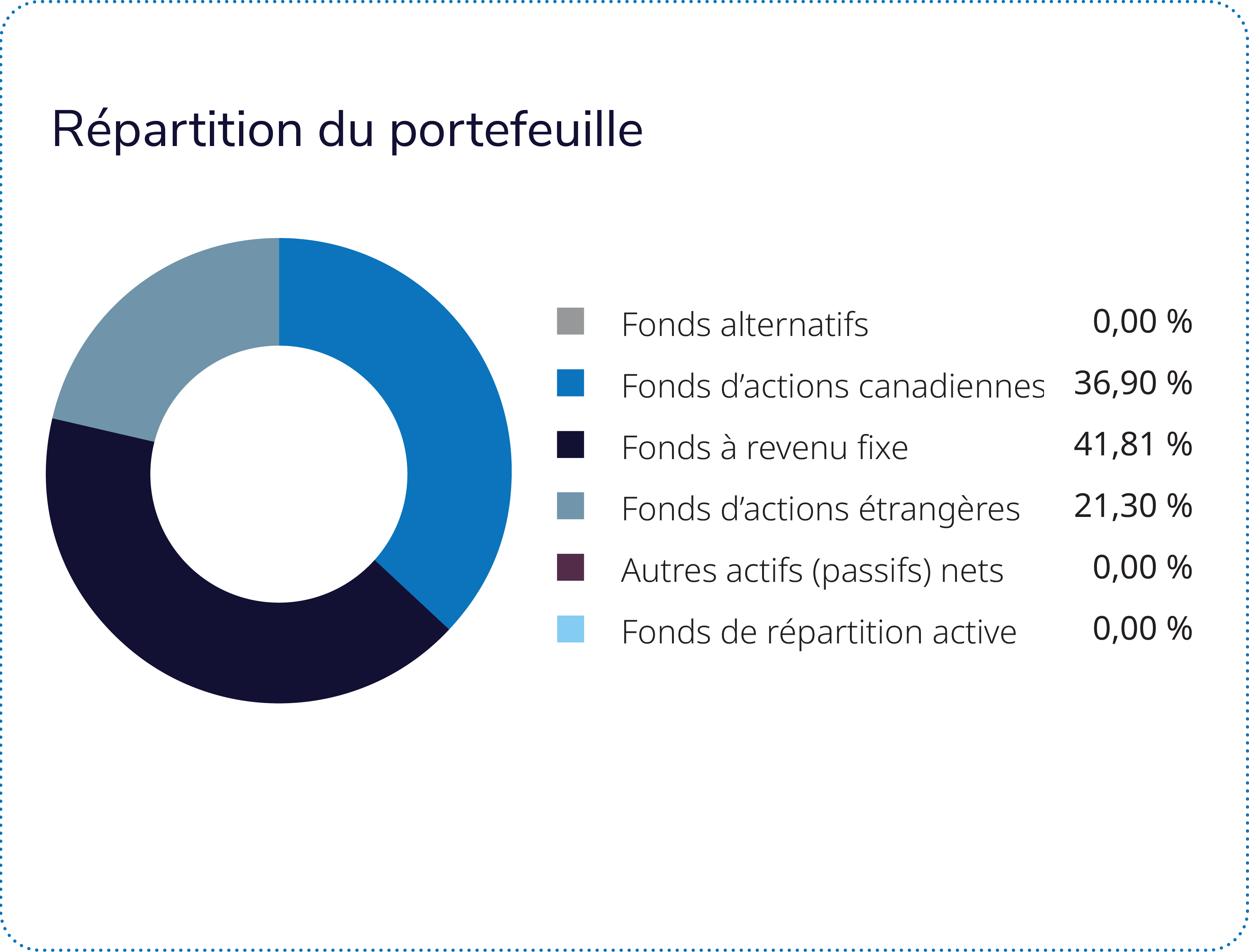 Le Fonds en gestion commune d’obligations canadiennes Mackenzie – IG, qui occupe la plus grande place au sein du portefeuille avec une pondération de 40 %, est la composante de titres à revenu fixe qui a inscrit le meilleur rendement en plus de surpasser son indice de référence. La sélection des obligations gouvernementales et la surpondération des obligations de sociétés ont favorisé le rendement.