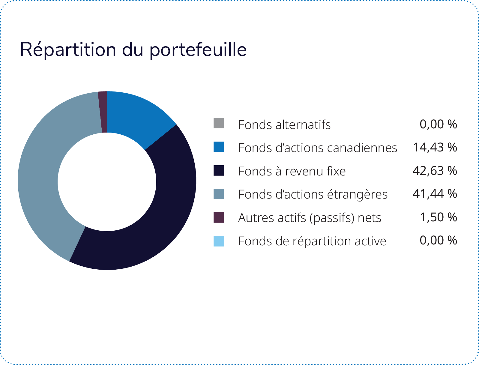 Les décisions relatives à la répartition de l’actif ont eu un effet positif sur le rendement au cours du trimestre. Sur le plan de la valeur relative, les positions sectorielles dans les actions américaines et les pondérations régionales ont toutes deux légèrement pesé sur le rendement.