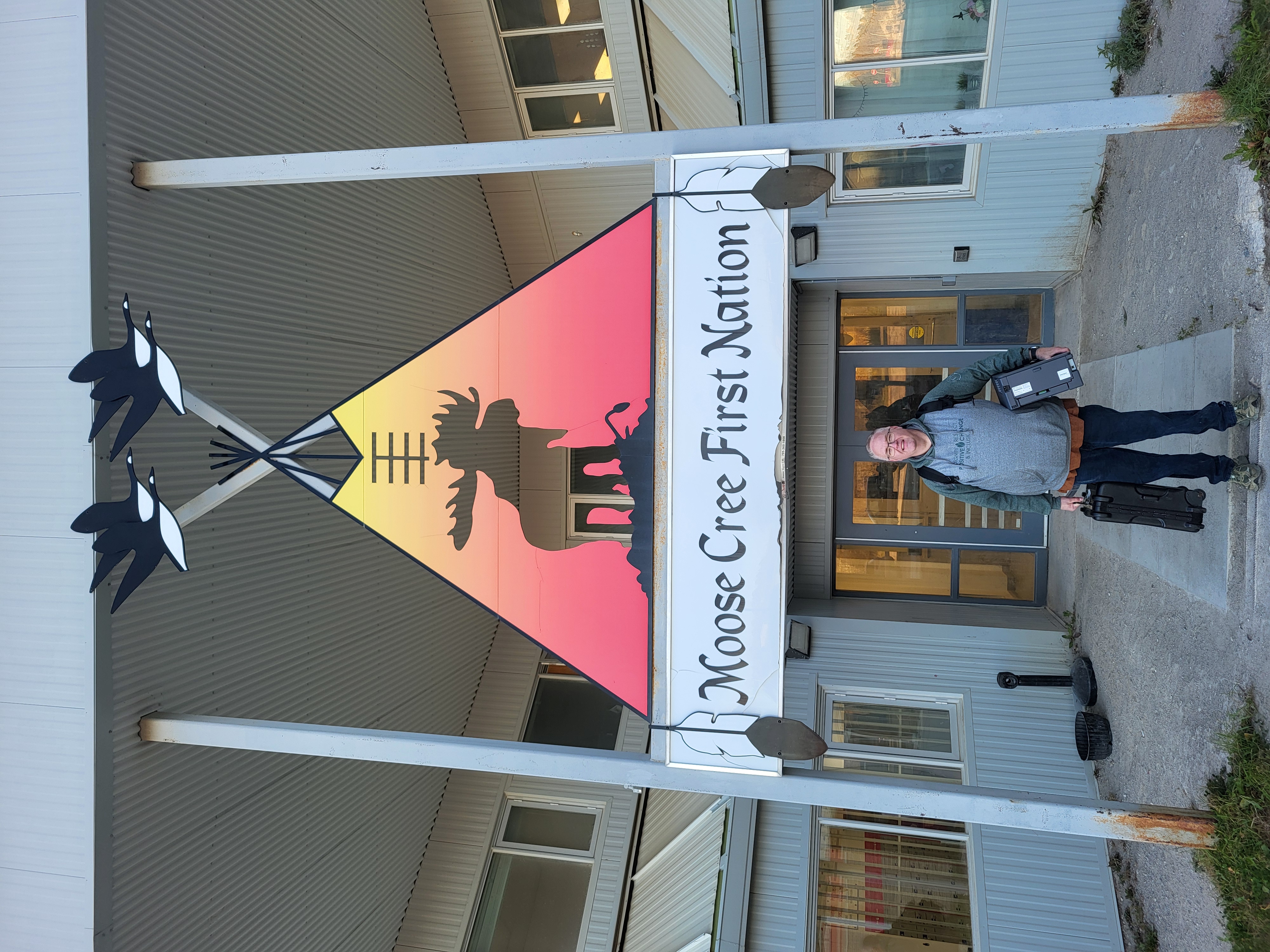 Un représentant du Centre de services communautaires de Sudbury, partenaire de Prospérité Canada, en visite à Moosonee et à la Moose Factory durant l’été 2025.